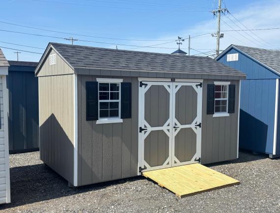 $4405.00 8x14 Stock # 702 Features: Clay Painted Siding White Trim Dual Black Shingles Black Shutters Options Include: 24"x8' Workbench Electrical Package 2 - Door Pins 5 Ft Ramp Inventory Category: Standard Sheds Contact Us Name * Phone Number * Email Address * Address * City * State * - Select -AlabamaAlaskaAmerican SamoaArizonaArkansasCaliforniaColoradoConnecticutDelawareDistrict of ColumbiaFloridaGeorgiaGuamHawaiiIdahoIllinoisIndianaIowaKansasKentuckyLouisianaMaineMarshall IslandsMarylandMassachusettsMichiganMinnesotaMississippiMissouriMontanaNebraskaNevadaNew HampshireNew JerseyNew MexicoNew YorkNorth CarolinaNorth DakotaNorthern Marianas IslandsOhioOklahomaOregonPalauPennsylvaniaPuerto RicoRhode IslandSouth CarolinaSouth DakotaTennesseeTexasUtahVermontVirgin IslandsVirginiaWashingtonWest VirginiaWisconsinWyoming Zip Code * Comments * CAPTCHA This question is for testing whether or not you are a human visitor and to prevent automated spam submissions. Submit